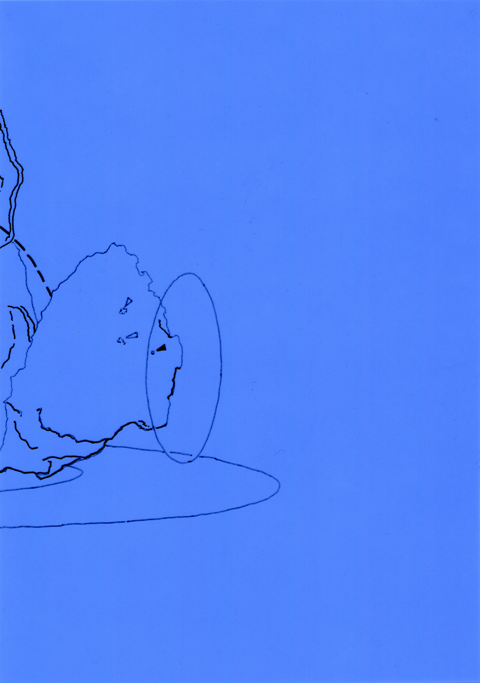 It consists of a series of drawings in which Zhou depicts paleontologists scanning fossil and archaeological finds. What is striking is that the scientists seems to pay more attention to the digitally produced computer image than to the actual stone. Zhou deepened and expanded his interest in the productive interplay between virtuality and real material, which he was able to observe in scientific research. A new series of drawings show scientists from a fictive world of research drawn with permanent markers on blue foils. They are at an even greater distance to their object of study that they seek to grasp all the more profoundly with observation methods of the future. Although they are investigating layers of rock and sediments, not a grain of sand, not a speck of dirt can be found underneath their fingernails anymore.
